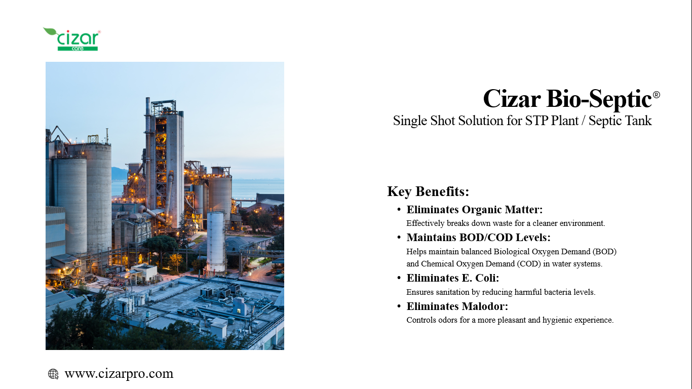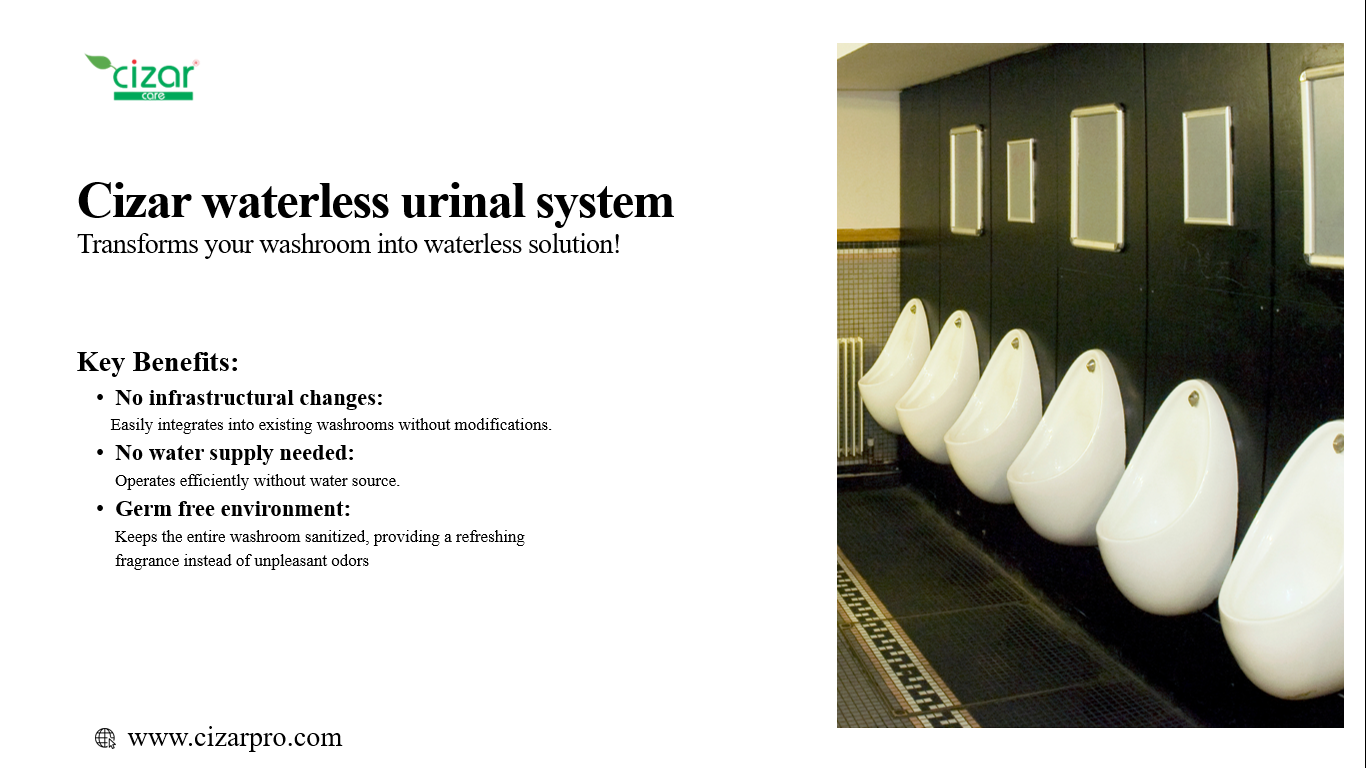 Porous waste management and hygiene: From home laundry and dishwash to specialized offerings like waterless urinals, bio‑septic systems, and compost accelerators, Cizar addresses comprehensive cleaning and sustainability