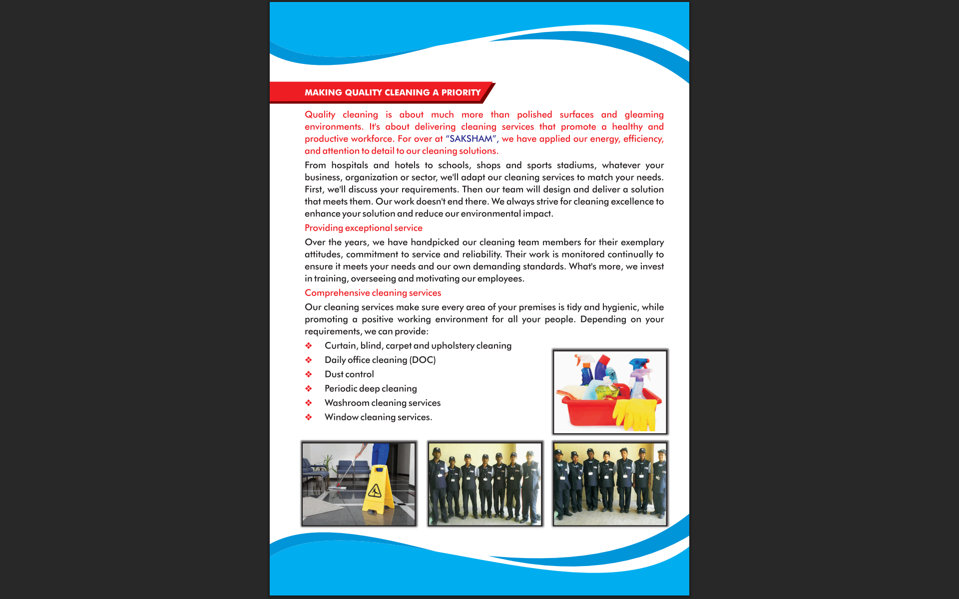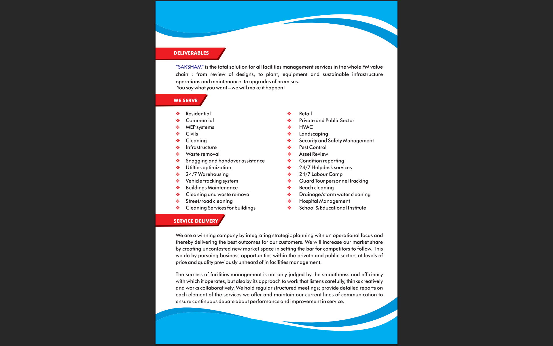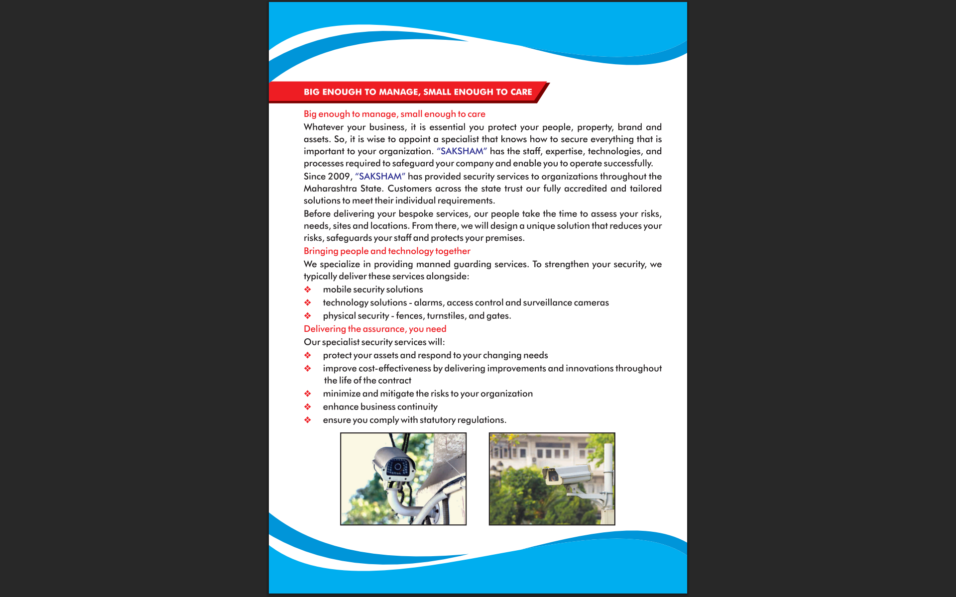 Saksham positions itself as a partner that lets businesses focus on their core activities while Saksham handles the “non-core but essential” operational and security responsibilities.