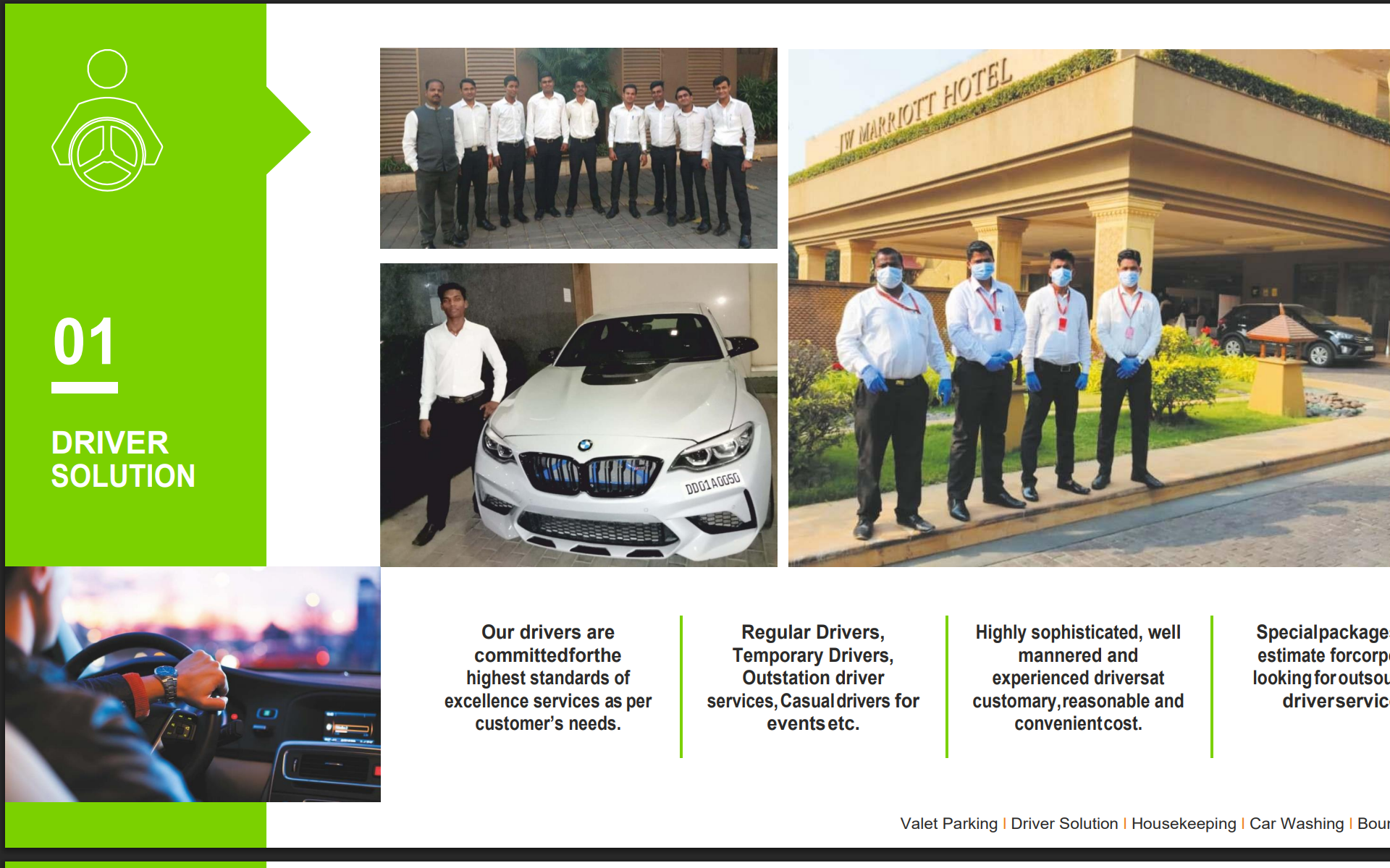 AQualityDriverSolutionCompany,dedicatedtoprovideexcellentlyskilled,professionallytrained, wellmannered& experiencedDrivers,ValetParking,Housekeeping,CarWashing&Bouncers We believe…