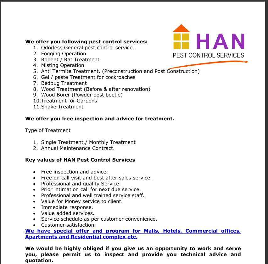 We like to introduce ourselves as leading pest control service operator for domestic,