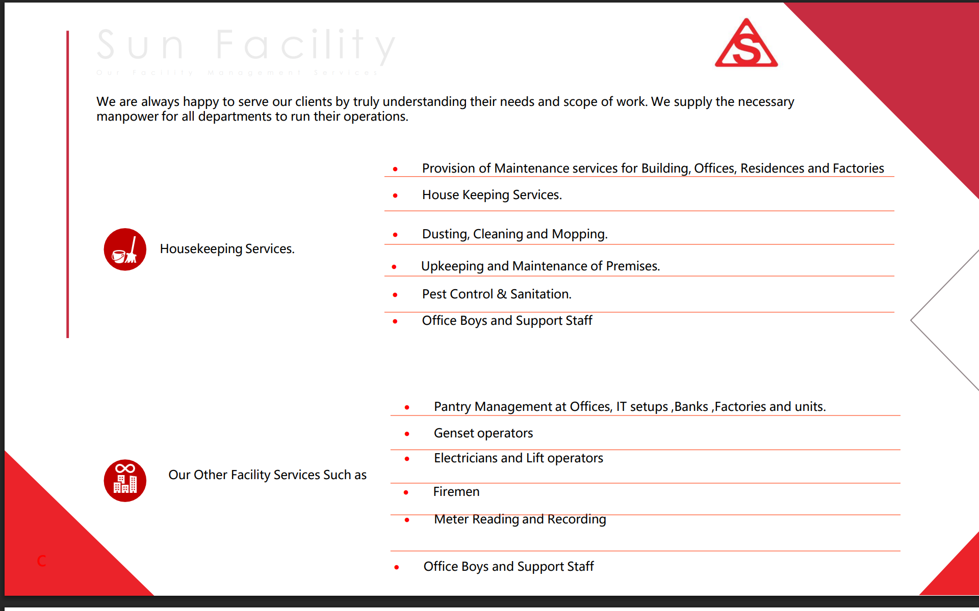 “Sun Security is a Specialist Security Service Provider based in Pune. The company commenced operations in 1994, offering total 29 years of industry experience & Expertise. We offer a tailor-made security solution for all your Security Needs. Sun Security is a one stop solution We offer manpower security along with overall technical surveillance support.”