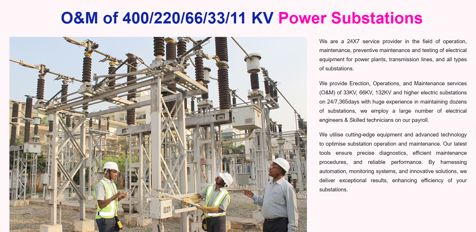 • O&M of 400/220/66/33/11 KV Power Substations
