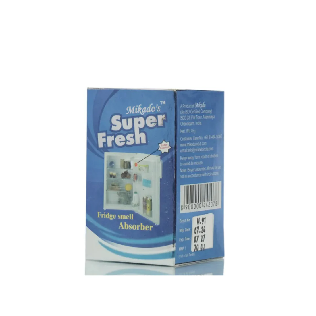 Mikado’s Super Fresh Fridge Freshener is a non-poisonous, multi-functional solution designed to keep your refrigerator fresh and hygienic. This innovative egg-shaped freshener not only prevents the entry of cockroaches but also inhibits fungal growth and reduces the rotting of bananas. It effectively absorbs and neutralizes unwanted odors, ensuring a clean and pleasant environment in your fridge. By using Mikado’s Super Fresh Fridge Freshener, you can enhance the freshness of your stored food and extend its shelf life.